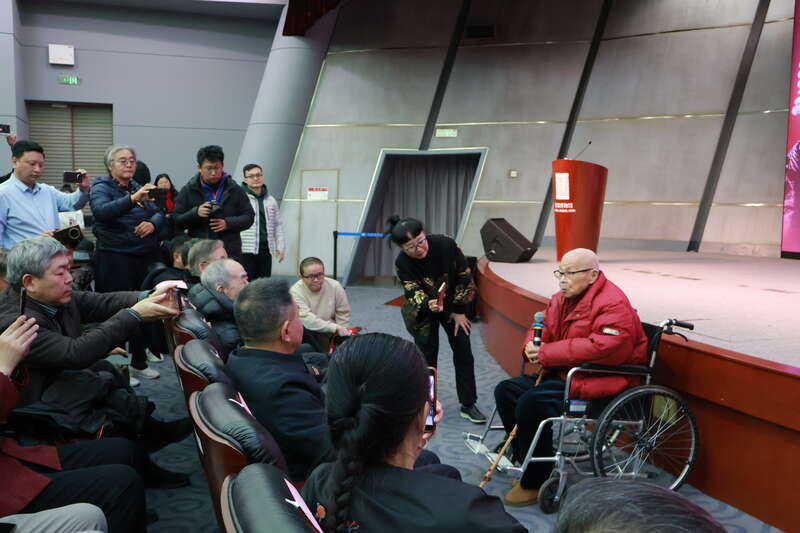 91岁的著名的京剧表演艺术家、学者钮骠在展览开幕式上致辞。 李怡蒙/摄