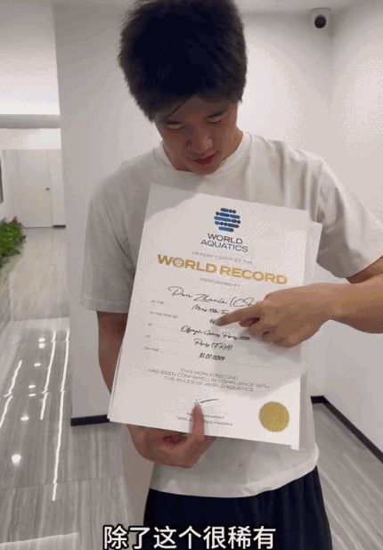 2024年9月10日,奥运冠军潘展乐发布视频,向网友展示了游泳世界纪录证书。