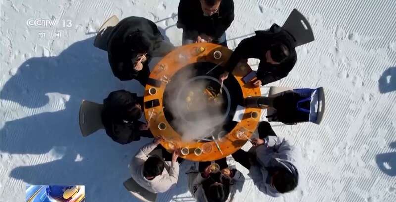 来到甘肃临夏,除了滑雪场,必不可少的还有各种美食。河州包子、各色油馃馃,还有手抓羊肉都是当地的特色食品。而最有冰雪氛围的,莫过于在雪地里来一场铁锅炖。