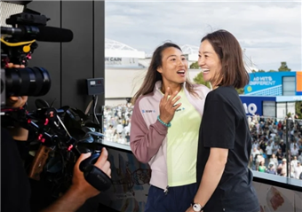 在2024年澳网赛后采访的平台上,郑钦文和李娜有了一次惊喜的相遇,见到偶像时她的兴奋溢于言表。