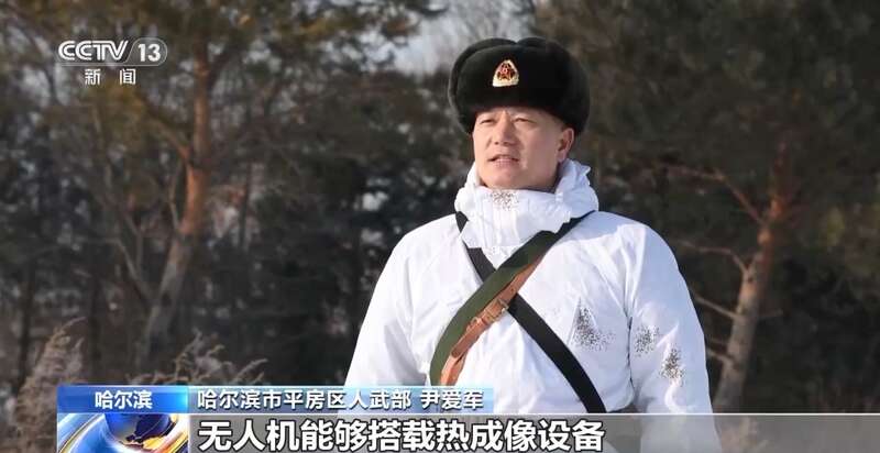 哈尔滨市平房区人武部 尹爱军:现地地形山林交错,地面搜救复杂,无人机能够搭载热成像设备,通视条件好,我们发现失联受困人员后,在空中远程喊话,投送战伤救护器材,及时配合医疗分队实施营救。