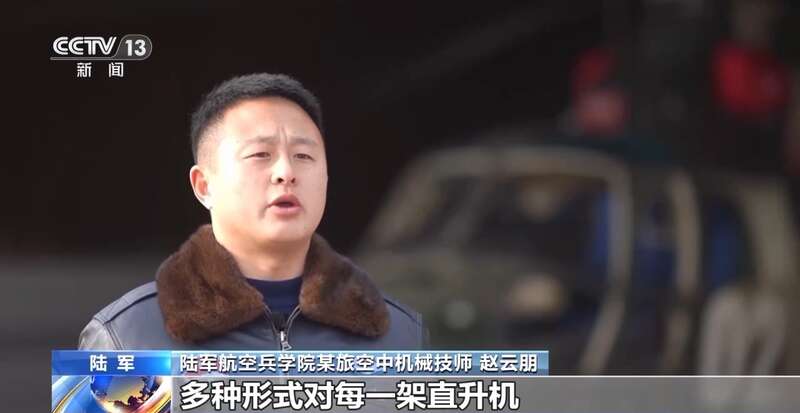 陆军航空兵学院某旅空中机械技师 赵云朋:我们针对驻地冬季气候及任务特点,采取机组自检、互检、模块化检查等多种形式对每一架直升机进行细致检查,严把放飞关,确保新年度新期班开飞直升机出动率和空地安全。