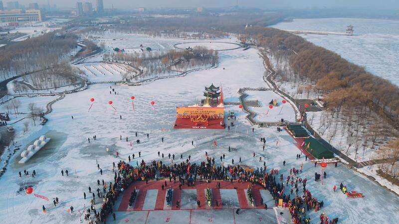 冰上龙舟热闹开赛
