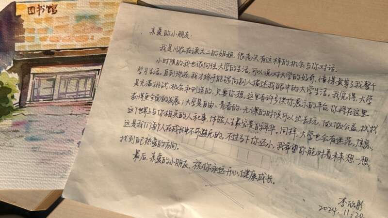 这是一位新疆和田的同学用维汉双语写的回信,他希望能和川农的学生形成稳定的笔友关系,通过通信的方式见识更广阔的世界。