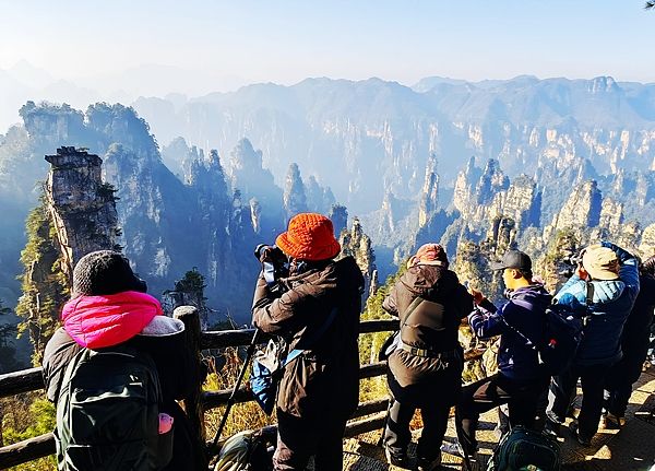 2025年1月5日,湖南张家界,张家界国家森林公园迎来2025年首个韩国摄影团。 该摄影团共7人,年龄最大的78岁,最小的57岁,计划在张家界拍摄冬日美景一个星期。其中领队高先生来过张家界20多次,仅组织摄影团到张家界就有6次;团员姜女士介绍20年前第一次走进张家界,就迷上了这是的鬼斧神工美景,这次是第四次来到张家界,将来还会常来张家界。