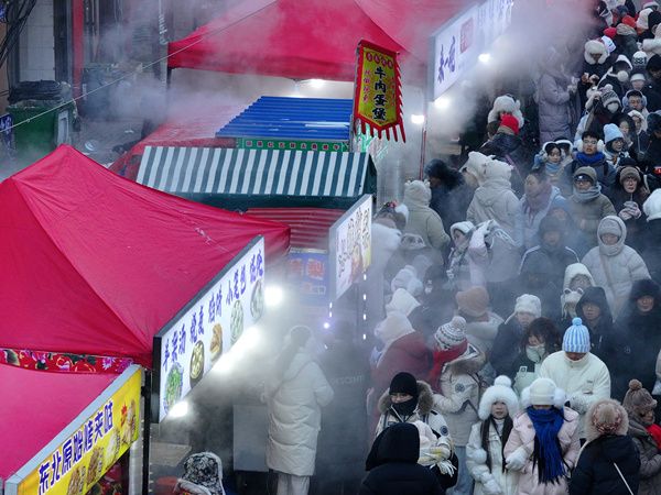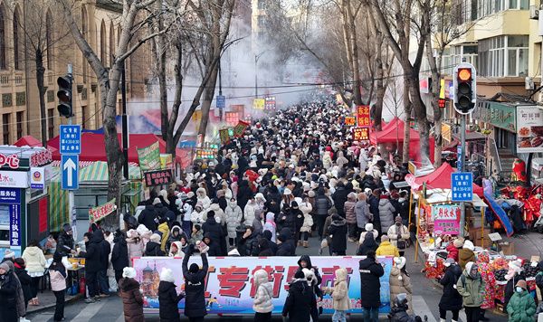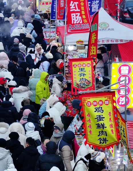 哈尔滨红专早市人流如织 南方“小金豆”热情过早