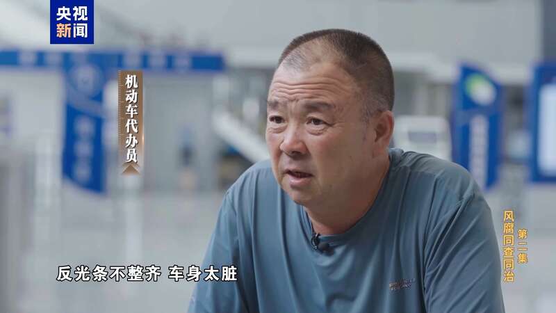 机动车代办员:说你行你就行,不行也行;说你不行就不行,你行也不行。反光条不整齐,车身太脏,棚杆不齐,大梁号不清呀,是吧。车身车貌,都可以随便找一个毛病。他那个人就是只认一个字,钱。