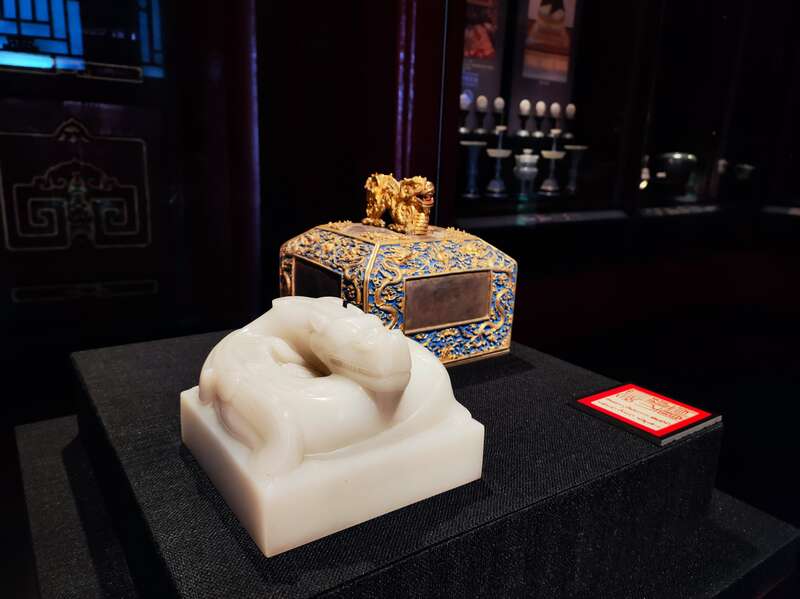白玉盘龙钮“大清受命之宝”。中青报·中青网记者 蒋肖斌/摄