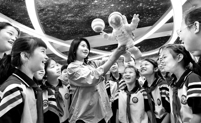 河北省邯郸市邯山区实验小学老师向学生们介绍航空航天知识。郝群英摄/光明图片