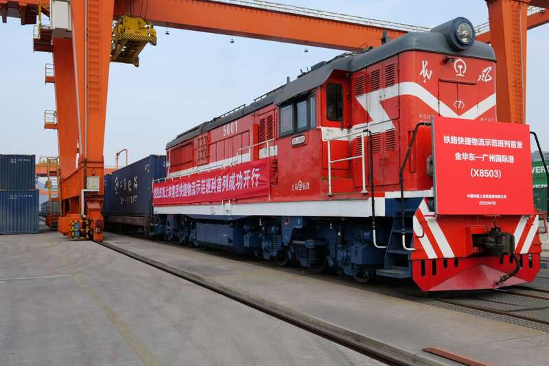 中国青年报客户端讯(刘艺 楼林军 中青报·中青网记者蒋雨彤)1月7日,X8503次铁路快捷物流示范班列从浙江金华东站驶出,驶向广州国际港,这标志着长三角与珠三角之间首趟铁路快捷物流示范班列成功开行。据悉,这趟示范班列上主要运载着来自义乌和金华的小商品、日用百货等。