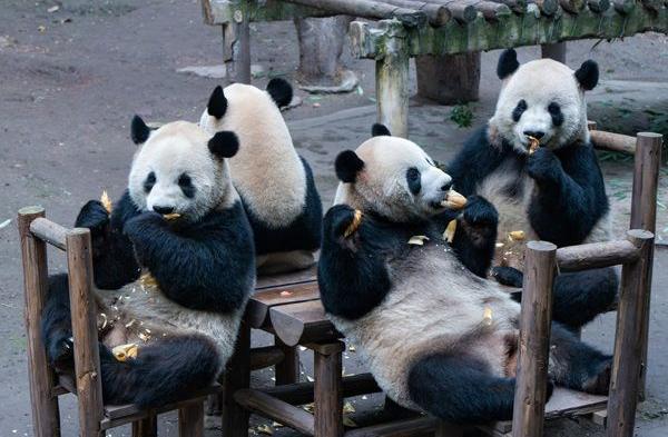 重庆:大熊猫“四喜丸子”冬日“围炉煮茶”