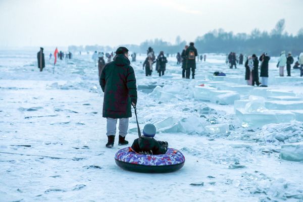 哈尔滨:沙滩部落“钻石海”成冰雪游热门打卡地