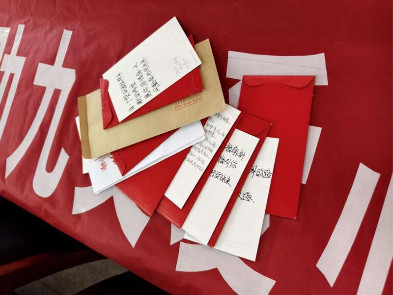 安徽工业大学学生与支教地孩子的互动信件。安徽工业大学团委供图