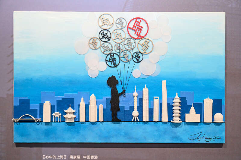 澎湃艺术在上海徐家汇书院举行的“SHANGHAI IN MY MIND上海城市形象视觉艺术展”开幕上看到,12幅汇聚绘画、摄影、拼贴、装置艺术、数字媒体等多种艺术形式的作品一同亮相,这些作品或围绕外国人眼中最具上海特色,或着眼于浦江两岸文化传承与发展,表现出艺术家眼中的上海,展示上海的繁华与活力,描绘城市的文化底蕴与人文情怀。
