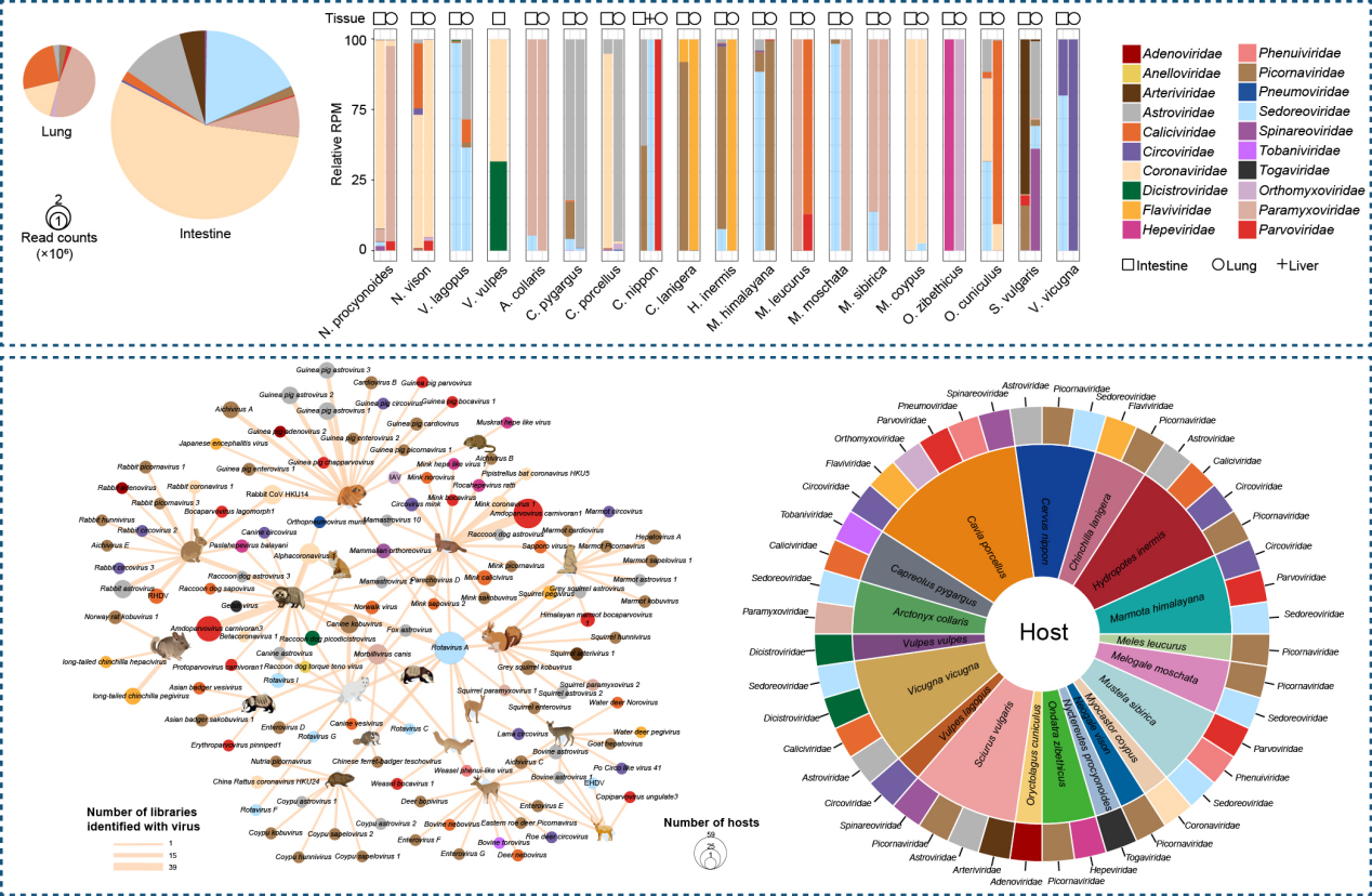 多学科交叉研究绘制多维度动物病毒组精细图谱,助力新发传染病精准防控。研究团队对缺乏系统监测的多种哺乳动物进行了宏病毒组研究,从空间聚类,动物类群、种群、组织等多维度揭示了潜在“风险”病毒的生态学与流行病学特征。研究结果为构建多维度新发传染预测预报新体系奠定重要数据基础。成果发表于Nature,并被亮点报道。