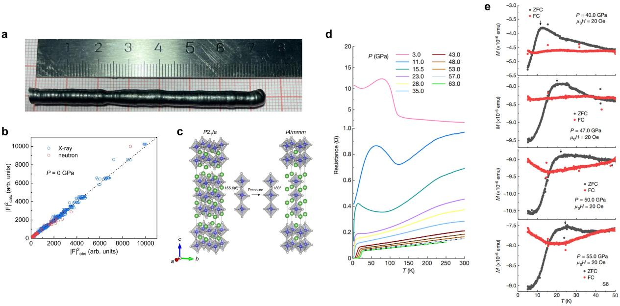 在三层镍氧化物单晶中发现压力诱导的块体超导电性,为高温超导研究提供了新的视角和平台。寻找非铜基高温超导体对揭示超导机理及推动应用至关重要。研究团队成功合成了几乎无氧缺陷的三层镍氧化物单晶,发现其在压力下呈现30K超导电性,超导体积分数超过86%,首次在镍氧化物中实现了块体超导电性,并揭示了其独特的层间耦合和奇异金属行为,为高温超导研究提供了全新的视角和平台。成果于2024年7月在Nature上发表。Nature以“超导探索领域进一步拓宽”为题亮点报道。