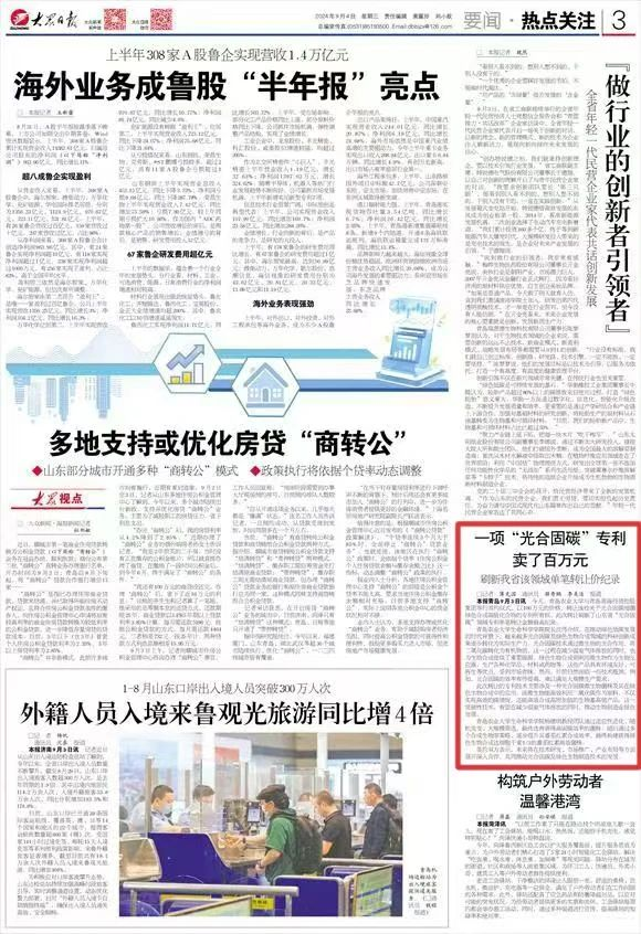 《大众日报》报道了生命科学学院杨建明教授团队光合固碳专利转让。