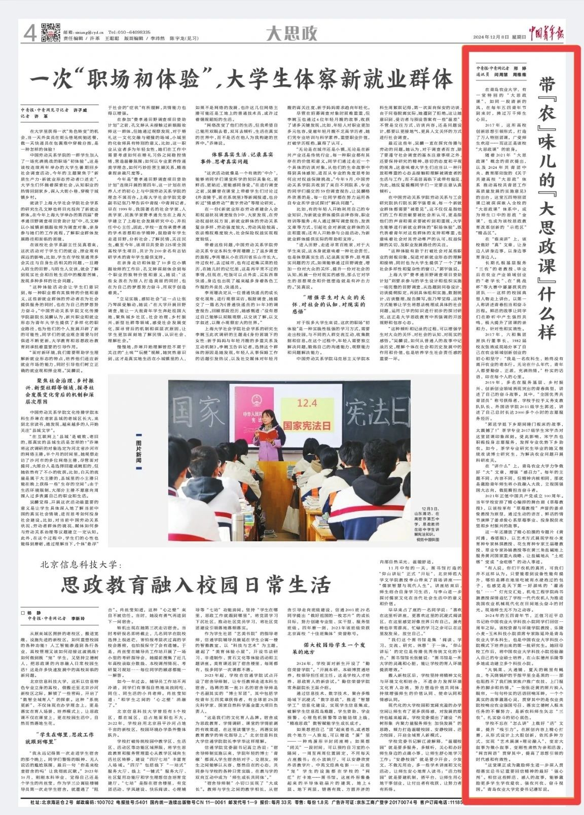 《中国青年报》报道了我校思政育人相关工作的先进做法。