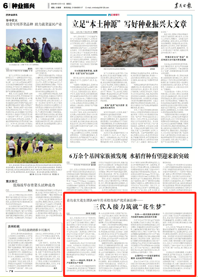 《农民日报》“种业振兴”版面报道我校花生育种及相关团队为我国花生产业发展持续科研攻关。