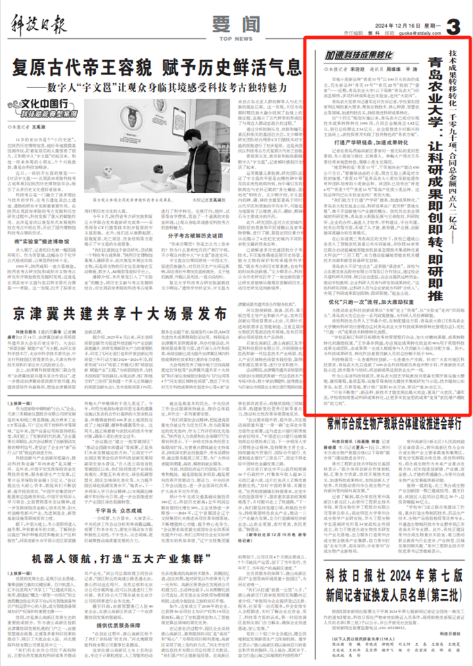 科技日报:青岛农业大学让科研成果即创即转、即研即推