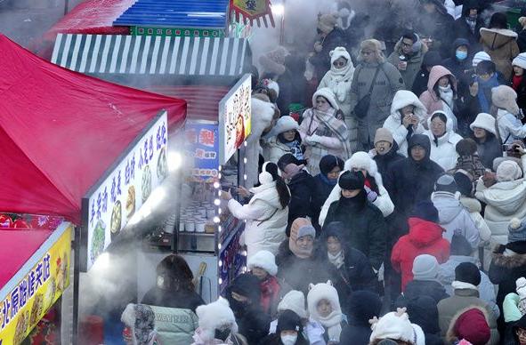 哈尔滨红专早市人流如织 南方“小金豆”热情过早