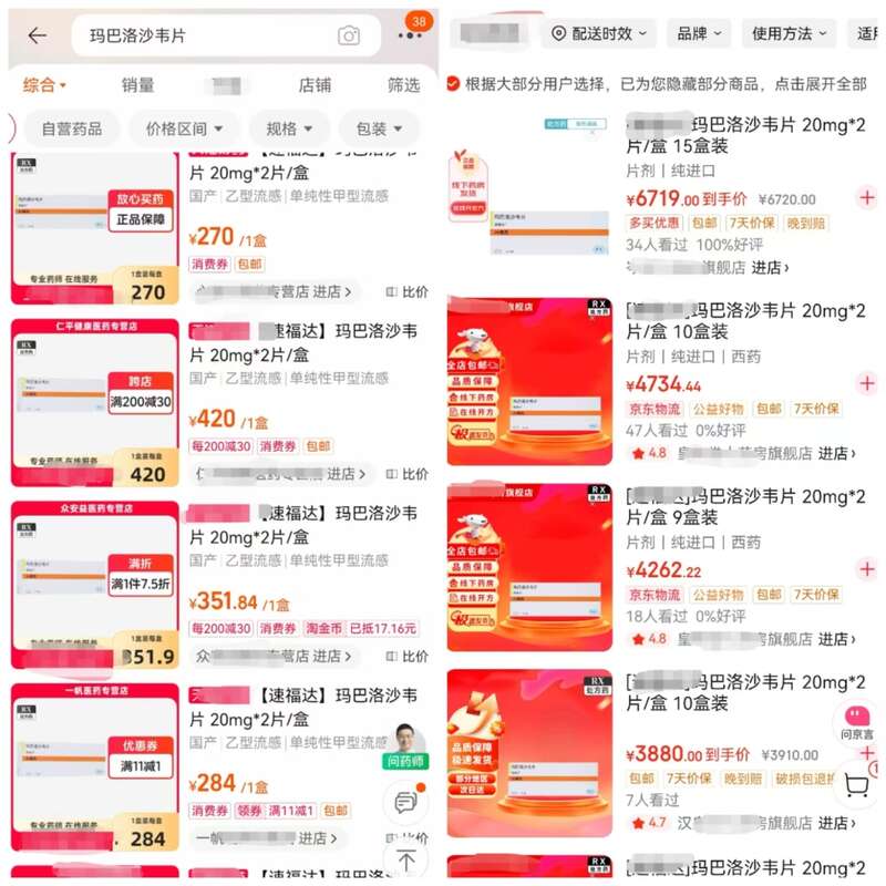 以玛巴洛沙韦(20毫克*2片/盒)为例,电商平台价格存在一定差异,有强调纯进口的药物每盒报价达到440多元,最低则是235元,价差超过200元。在线下药店,澎湃新闻记者咨询的多家药店也有价差,但报价普遍在300元以下,价差几十元。对于玛巴洛沙韦的价格,罗氏中国此前表示,出厂价格按照国家医保谈判价格执行,一直没有调整过。公开资料显示,玛巴洛沙韦在医保谈判前零售价为498元/盒,医保谈判后的医保支付价为222.36元/盒。