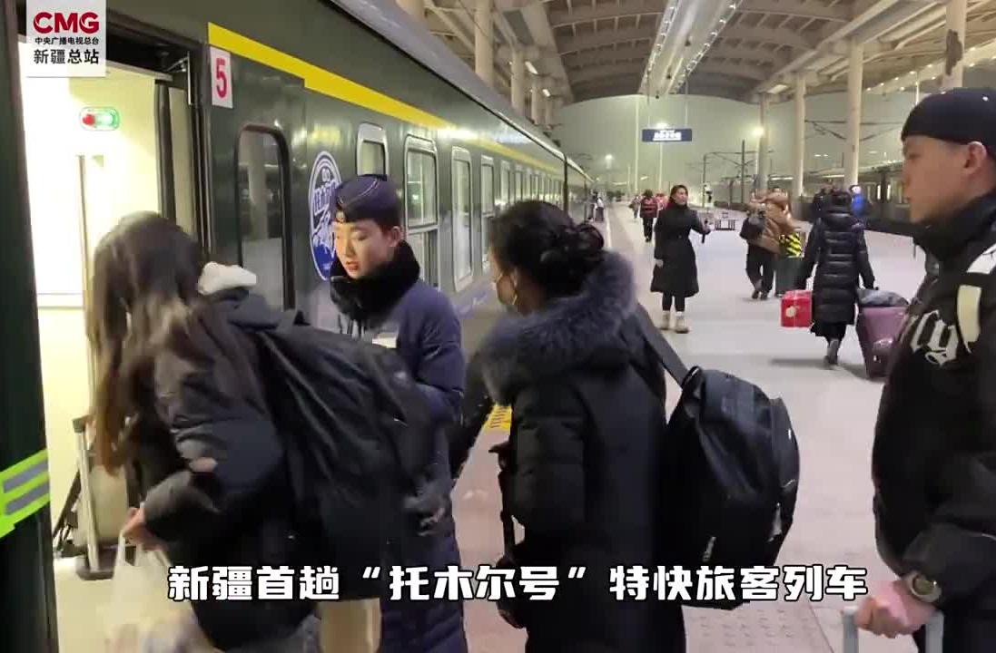 新疆阿克苏:新疆2025年首趟“托木尔号”特快旅客列车开行