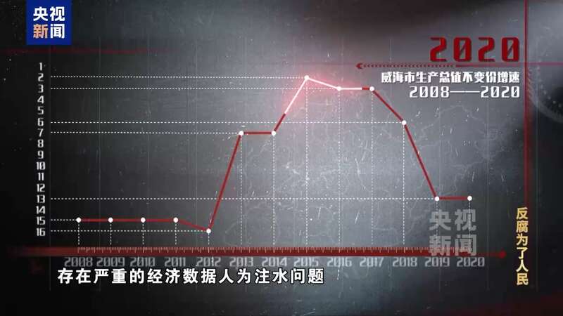 专案组调取资料,发现那段时间威海的GDP增速数据确实画出了一道相当反常的曲线。2012年之前,威海GDP增速在全省各地市中始终排在靠后的位置,而孙述涛一担任市委书记,2013年排名就陡升到了第7名,到2015年又跃升到第2名,2016年、2017年都保持在第3名。到2018年,孙述涛调离了威海市,次年排名就回落到了第13名。
