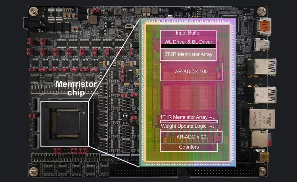 清华团队研制出的新款忆阻器存算一体芯片