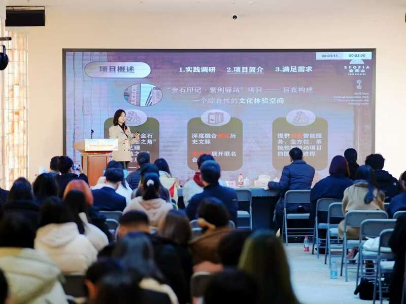 决赛当天,47支入围团队代表就设计理念、作品特色等内容进行路演,专家评委围绕创新性、实用性、美观性、表现力以及完整性对作品进行点评。入围作品从青年视角出发,紧扣“强国复兴有我”比赛主题,将专业知识、设计理念与金紫山街区特色融合,从建筑中汲取创作灵感,创作出一批有特色的、能落地的优秀原创作品。