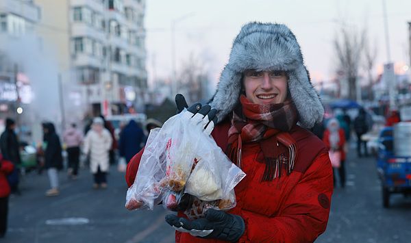 哈尔滨:荷兰小伙逛早市 解锁“中国汉堡”