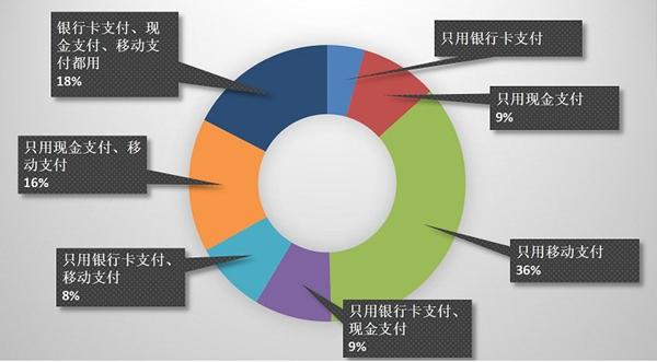 被调查的外国旅客在华支付时,只使用移动支付的占36.17%,银行卡支付、现金支付、移动支付3种支付方式都使用的占17.43%,只使用现金支付和移动支付的占比15.64%。外国旅客在华期间使用银行卡支付、现金支付和移动支付的比例分别为39.20%、51.08%、77.59%。