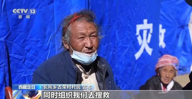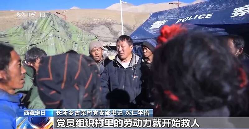 长所乡古荣村党支部书记 次仁平措:地震的时候太紧张了,想跑也跑不动,摇完了就准备救人。党员组织村里的劳动力就开始救人。