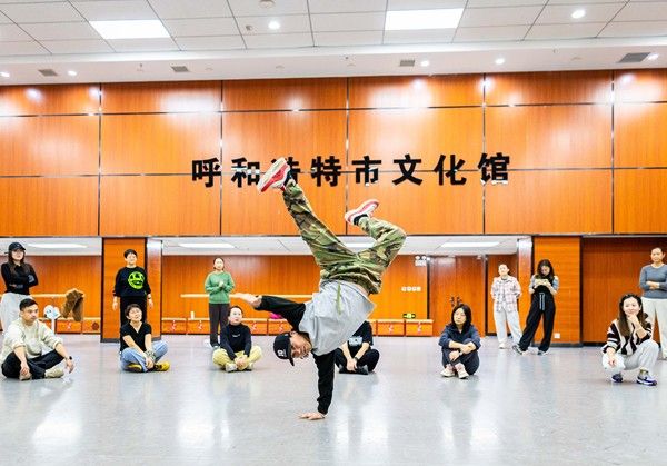 2025年1月9日,呼和浩特市文化馆,街舞教练在夜校课程上为学员做展示。