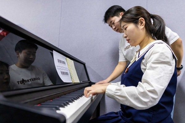 2025年1月9日,呼和浩特市文化馆,学员在学习“钢琴”夜校课程。