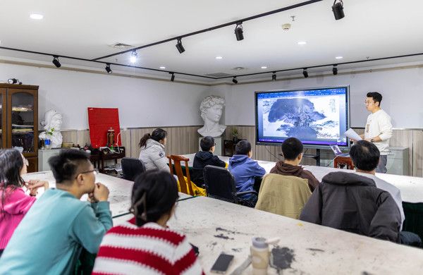 2025年1月9日,呼和浩特市文化馆,学员在学习“艺术审美”夜校课程。