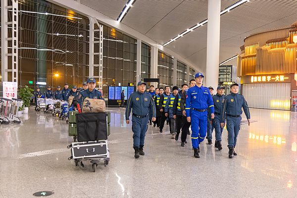 2025年1月9日,重庆市蓝天救援队一梯队共出动12人,携带卫星电话2台、卫星地面站1套、海能达自组网通讯设备2套、照明无人机2台、热成像无人机2台、生命探测仪2台、液压破拆2套、搜救犬1条、绳索装备2套,于1月9日06:25 乘坐西藏航空TV9813次航班从重庆出发前往西藏拉萨,抵达西藏贡嘎机场后自驾前往日喀则进行地震救援行动,重庆蓝天本次前往一线主要负责灾后安置工作,后续二梯队安置物资若干正统筹前往中。