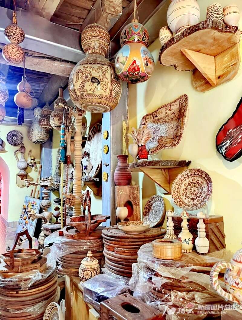 “这里不像一个店,更像微型的博物馆。”来这里的游客多有这种感觉。店里的货架上,木勺、木碗、木盘、木枕头等家居生活木制品琳琅满目。店主人玉山江·玉素因在古城经营木制手工艺品店已有30多年,开的三家木制手工艺品店中,有两家店分别由他的两个儿子经营。