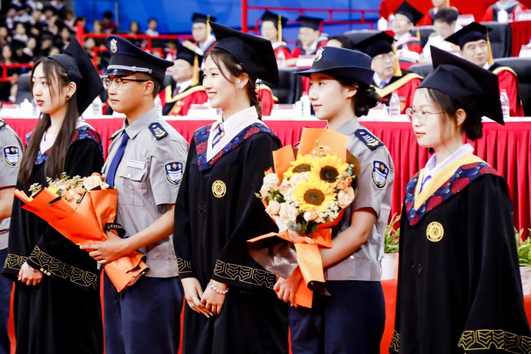 赵予宁(右二)在毕业典礼上作为保安员代表接受献花