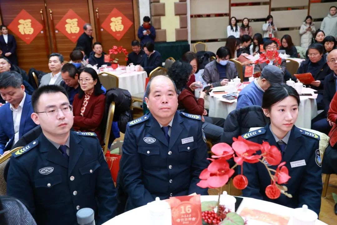 赵予宁(右一)与同事作为保安员代表,受邀参加学校2025年春节团拜会