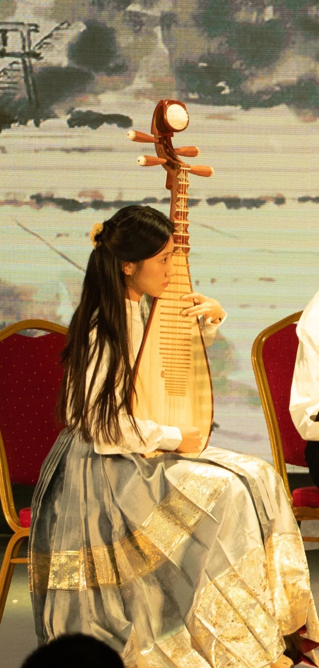 赵予宁在汉服社冬至雅集上演奏琵琶