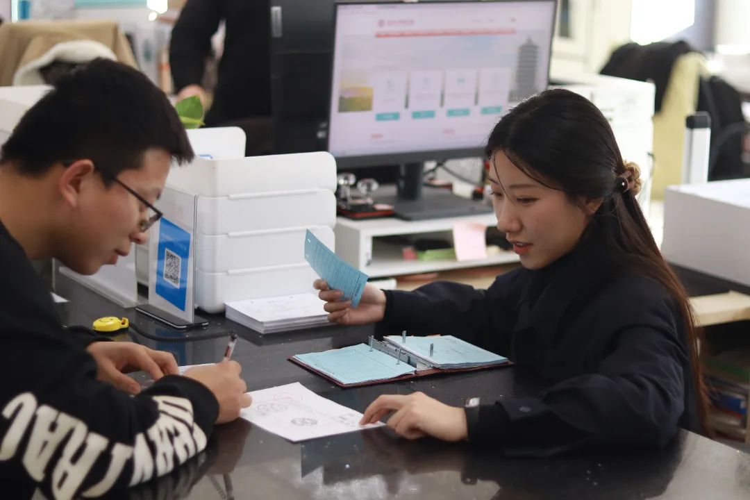 在上岗第一个月的见习期,赵予宁认真观摩学习其他业务员办理业务的流程,刚开始独立办理业务的时候,遇到自己不确定的情况也会及时向有经验的同事请教。接听电话是难度最大的一项工作,如果对业务没有全面深入的掌握,经常会在师生询问一些细节问题时回答不上来。因此,她在其他业务员接电话时仔细聆听,对自己不熟悉的业务内容查缺补漏,经过长期的学习才能够独立接听电话。通过努力和坚持,她从窗口业务的“小白”成长为熟练的业务员,参与大小勤务五十余次,做到了本职工作零失误。