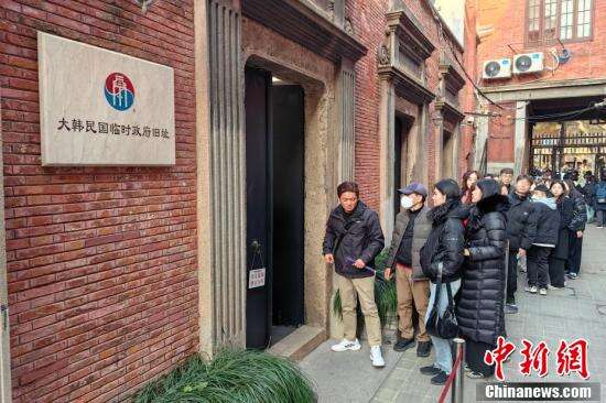 1月12日,韩国游客在上海市马当路上的大韩民国临时政府旧址排队等候参观。自从中国对韩国免签之后,打“飞的”到上海过周末的韩国人越来越多。据上海海关统计,近期韩国籍旅客进境人数显著增长,2024年12月,上海浦东机场口岸进出境韩国籍旅客超13万人次。