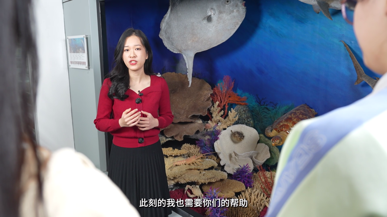 在短短五分钟的视频里,张瑜以一株石珊瑚的口吻,将珊瑚的形成过程、生存困境、重要作用、拯救方法娓娓道来,恳请人们保护珊瑚、保护珊瑚所处的海洋家园。人类肆意破坏海洋生态环境导致“珊瑚白化”的惨象令人触目惊心,珊瑚大量消亡引发的资源短缺、自然灾害令人忧心忡忡,张瑜希望用一帧帧真实的影像、一个个直观的数据让人们意识到珊瑚保护势在必行。然而获取这些视频素材绝非易事,“在京内无法拍摄与海洋、珊瑚礁相关的实景内容,好在北师大动植物标本馆给予了我极大帮助。在学院党委和标本馆王宁老师的倾力协助下,我在馆内拍摄了珊瑚标本、珊瑚礁生态系统模拟景观等场景,丰富了视频内容,提升了视频质量。”这是张瑜第一次自编自导自演科普微视频,她在剧情设计、视频剪辑等方面都取得了很大进步,并期待在未来继续制作新的科普作品。