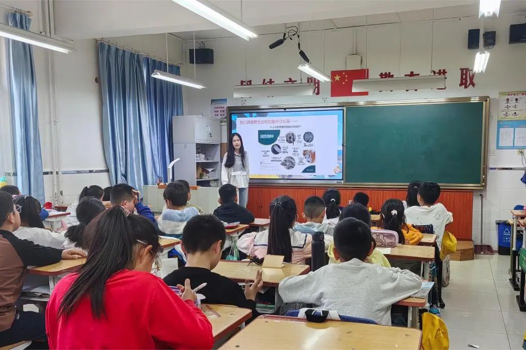 “生态科普”始终是张瑜志愿服务的关键词。选择深耕这一领域,当然首先与她的专业方向和个人兴趣有关。张瑜从本科到硕士阶段的研究对象都是水生生物,她在相关专业领域有比较丰富的知识储备和浓厚的研究兴趣,也有大量专业资料可以参考。俗话说“给学生一杯水,自己要有一桶水”,科普志愿者需要对自己讲述的知识有足够深入的了解,在设计课程时兼顾“专业性”和“趣味性”,以受众喜闻乐见的方式将专业知识与日常生活联系起来,才能让受众对原本不熟悉的领域有一种基本的认识和感知。在这方面,生态学专业的张瑜无疑具有得天独厚的资源与优势。