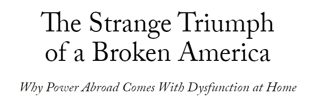 与此同时,美国这些对外实力扩张也带来了两大弱点。它们加深了城乡间的鸿沟,加剧了经济差距,并助长了政治两极分化。其次,美国野心勃勃地在海外追求一系列利益,而它的“疏离感”与全球参与之间的矛盾导致了一种空洞的国际主义,美国试图在世界舞台上发挥领导作用,但往往缺乏充分实现其目标的资源,无意中助长了代价高昂的冲突。这些弱点——国内分裂和战略无效——共同威胁着美国的稳定与安全,形成了决定其力量的双重性。