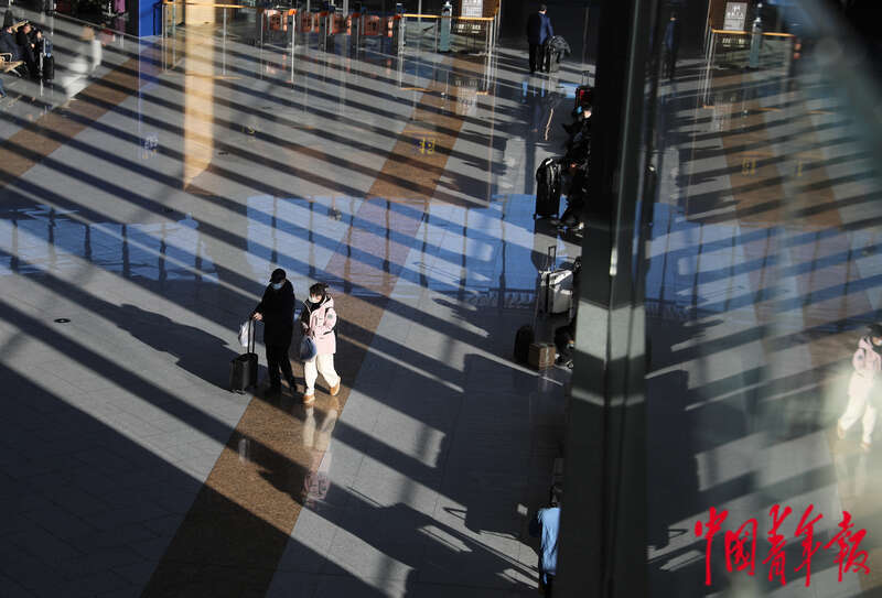 1月14日,北京朝阳站,旅客拖着行李箱准备进站乘车。当日,2025年全国铁路春运启动,春运首日,全国铁路预计发送旅客1030万人次。据介绍,今年全国铁路春运从1月14日开始,至2月22日结束,为期40天,全国铁路预计发送旅客5.1亿人次,日均发送1275万人次,节前客流高峰日预计为1月25日(腊月廿六),节后客流高峰日预计为2月4日(正月初七)。中青报·中青网记者 陈剑/摄