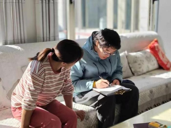 走访第一家时,社员们遇到了正读初中的睿睿(化名)。睿睿留着齐耳的短发,在见到社员们时会脆生生地问哥哥姐姐好,在社员们夸她可爱时会羞涩地抿嘴笑。在聊天的过程中,睿睿说起了梦想中未来的生活: