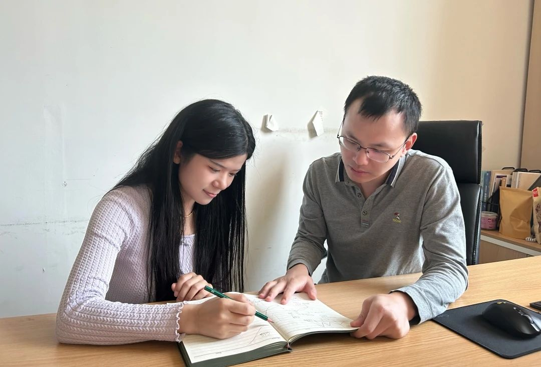 王怡静和导师王戎在讨论