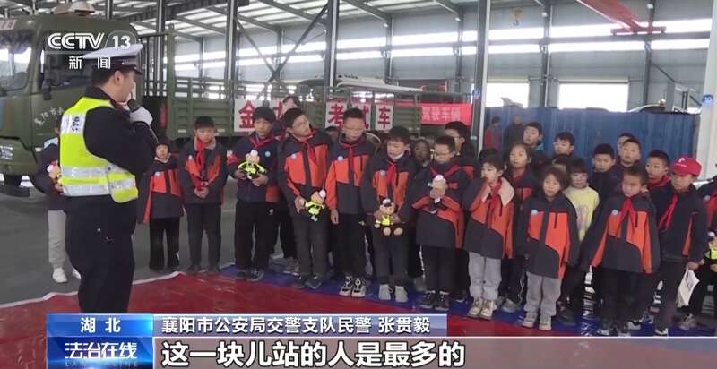 襄阳市公安局交警支队民警 张贯毅:这一块儿是我们盲区位置最大的地方,刚刚我们也看到了这一块儿站的人是最多的。尤其要注意我们左右两侧的盲区,千万不要在这个地方玩耍。